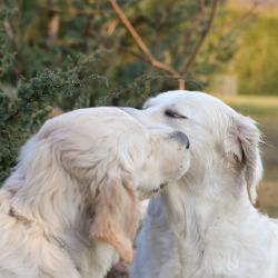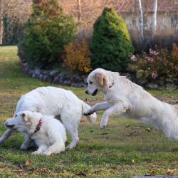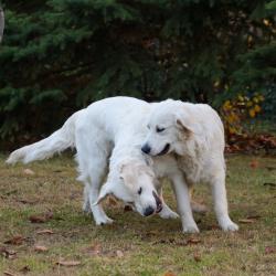The first meeting of the puppies of Star is Born of Sunshine’s Valley ‘Winston’ and Shamrock Jungle Voice ‘Zara’ at their age of 7 months.